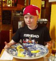 Ian wore that England flag on his head all weekend, and was proudly and exuberantly supporting England. And all the other home countries, and just about anyone else who looked to be trying hard. I did pretty much the same thing - except I had a baseball cap with the Cross of St George on ... Then as we were leaving on Sunday we found this advert for a match between Manchester United and Boca Juniors from South America. Ian couldn't make up his mind whether he wanted to go see the match - so whether he should cast scorn 'cos it was Man U ... In the end - we decided not to do either :) |