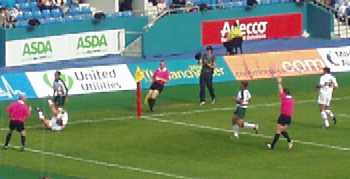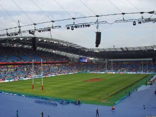 On Friday evening we managed to get into the Rugby 7's competition, and saw the best teams in the world (such as New Zealand and Fiji) playing. The first picture just shows a shot of the City of Manchester stadium, built especially for the games and to be used afterwards as a home ground for Manchester City Football club. The Second picture shows an England player going over for a try against the Cook Islands. We watched the initial pool stage of the tournament - saw England play and win twice - so that was quite pleasant. And with the events we managed to get to see, it was the only time we saw England doing well. Like everyone else - we picked a second and third country to support - In our case it was Trinidad and Tobago (because we both had T&T T-Shirts with us) and Niue island. But the Niue, with its population of about 2000 people is everyone's favorite :) |