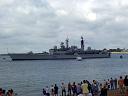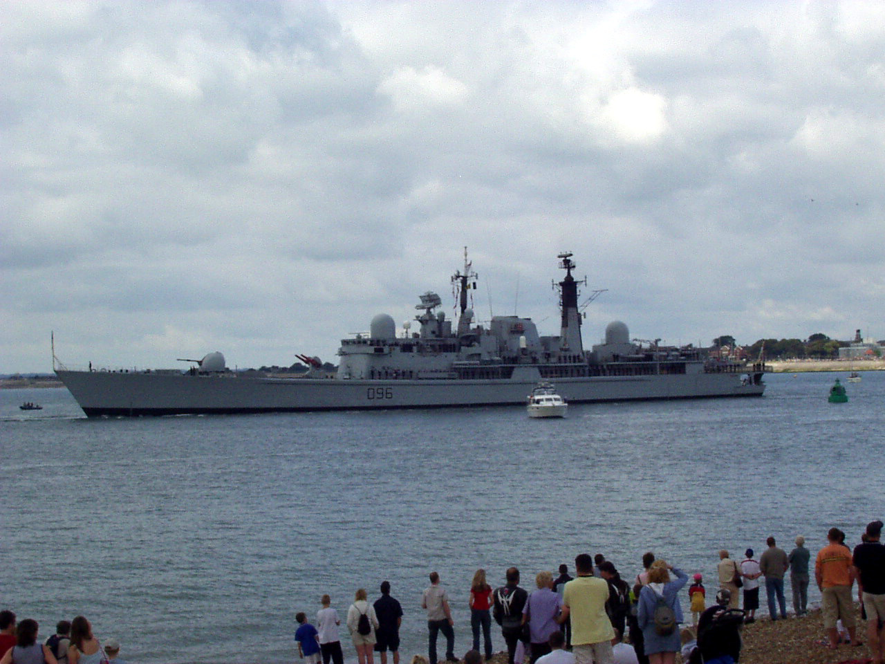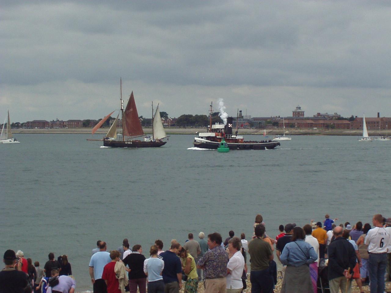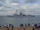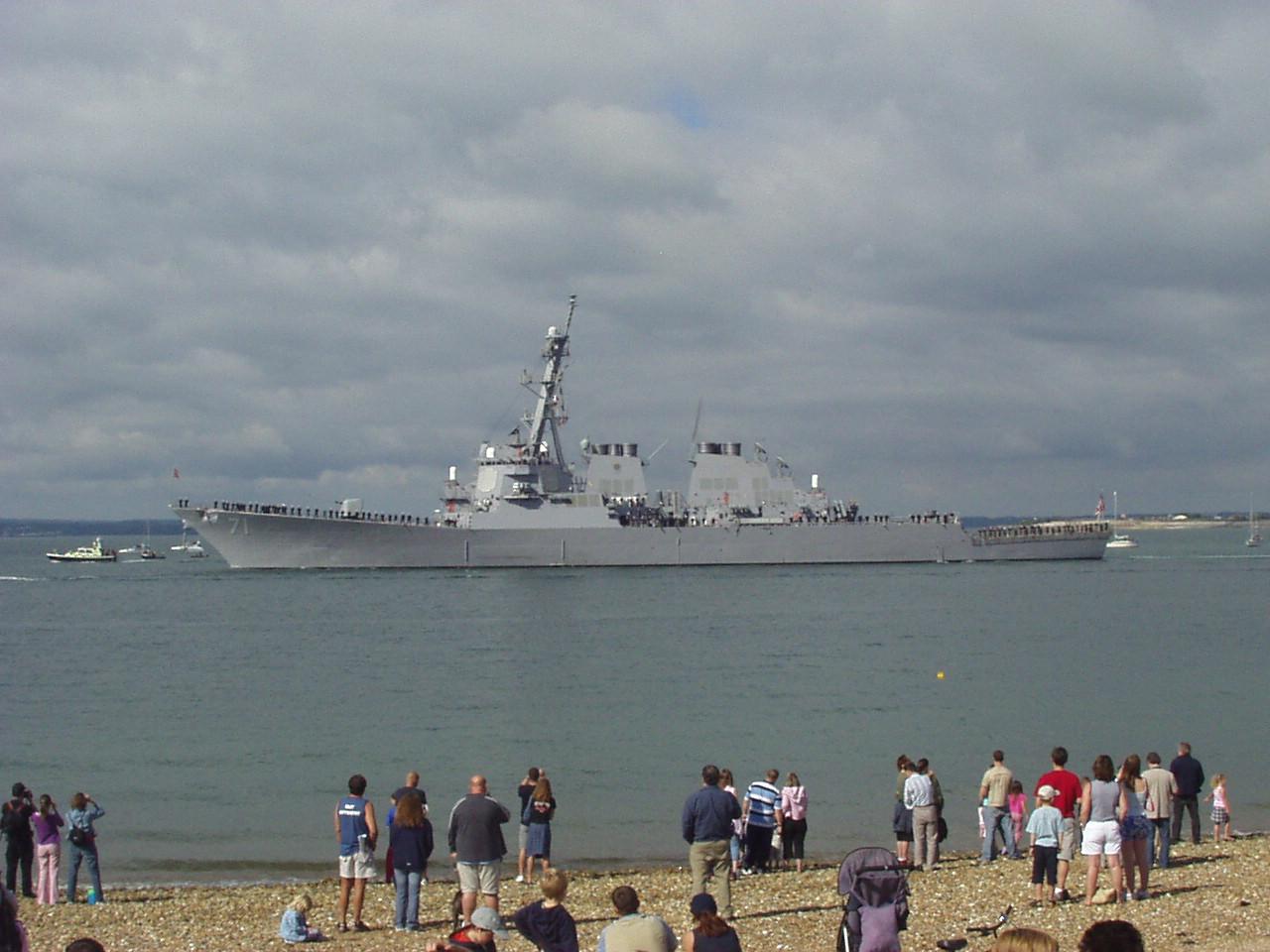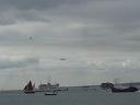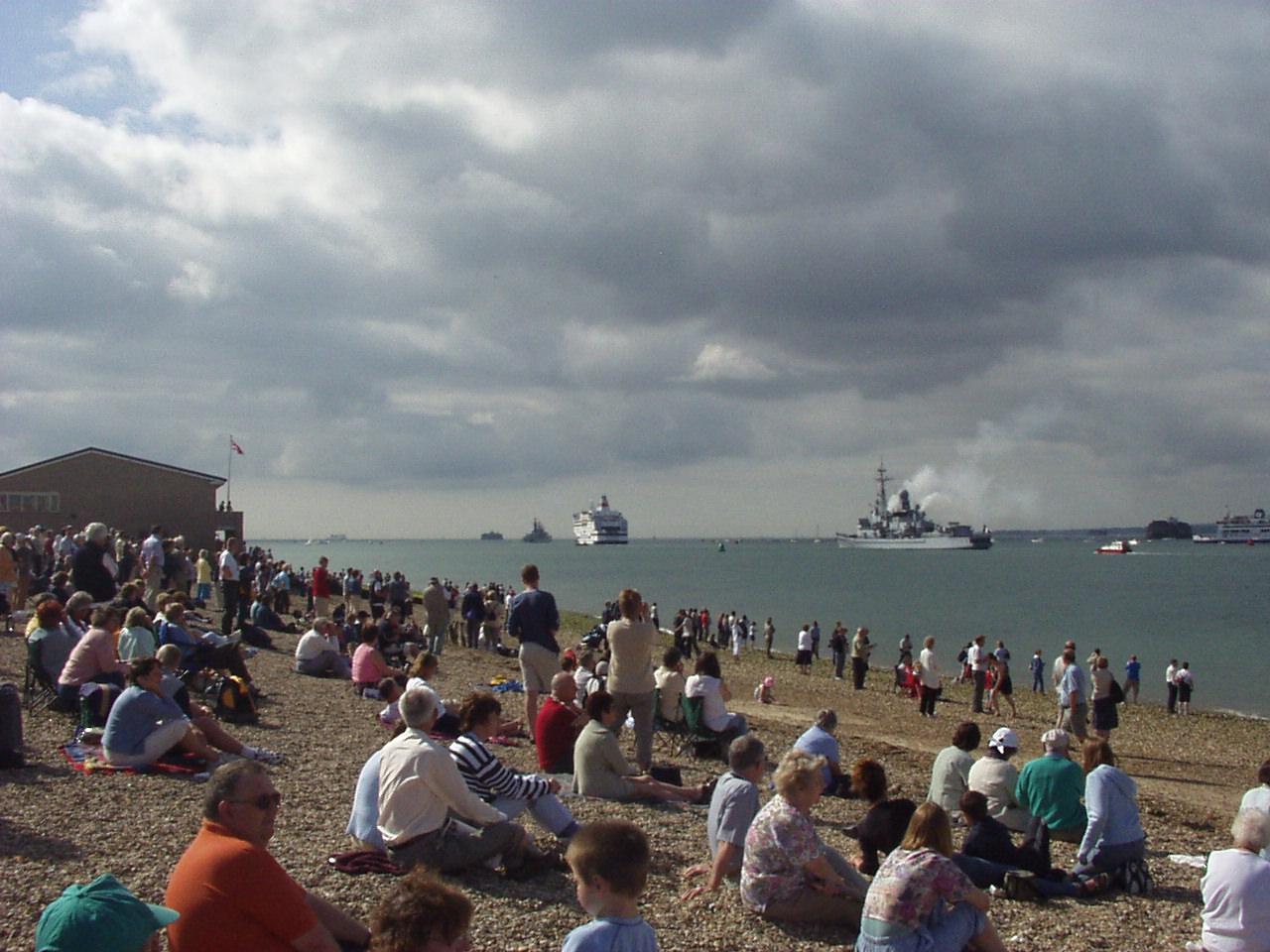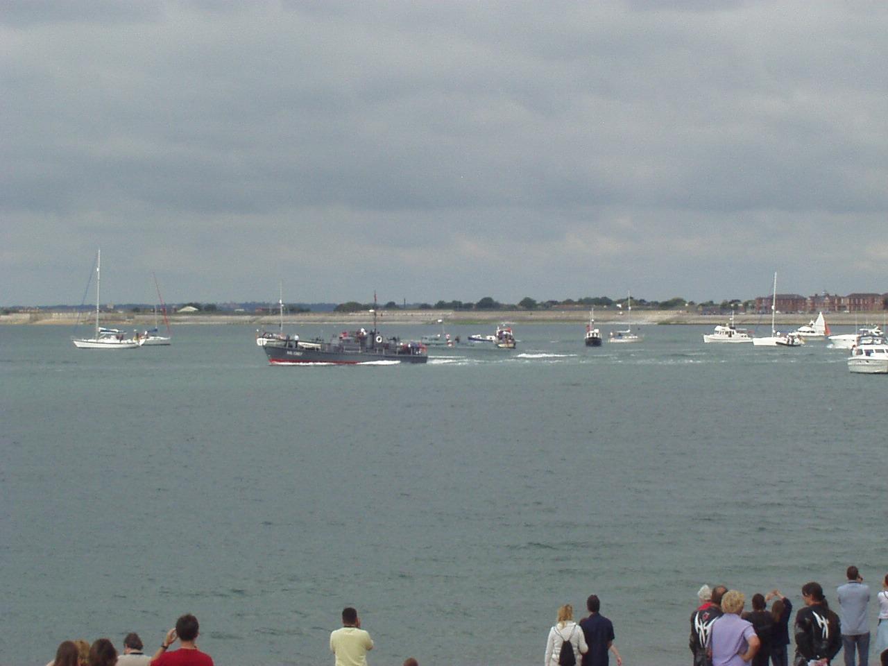 June 2004 It was the 60th aniverasy of the D-Day landings and a small fleet of Allied war ships (British, American, French and Canadian) escorted a channel ferry full of D-Day veterans back across the English Channel. The ferry was, aptly, a Brittany ferries boat called 'Normandie' and the veterans were going to France to take part in the official commemorations. They were all accompanied by a flotilla for small boats some of which were second world war veterans in their own right! The ships left from Portsmouth harbour, so we went across to watch them depart from Southsea beach. So did a few thousand other people :) Anyway here are a few pictures. Unfortunately it took me ages to get these images online, and I can't remember which ship is which. :( As the ships left there was a flyby - I think it was from a Lancaster bomber, a Spitfire and a Hurricane. - they would certainly be appropriate planes. There was also a 'show' on Southsea common, although I didn't get any pictures of that. Click on a thumbnail for a larger image. |