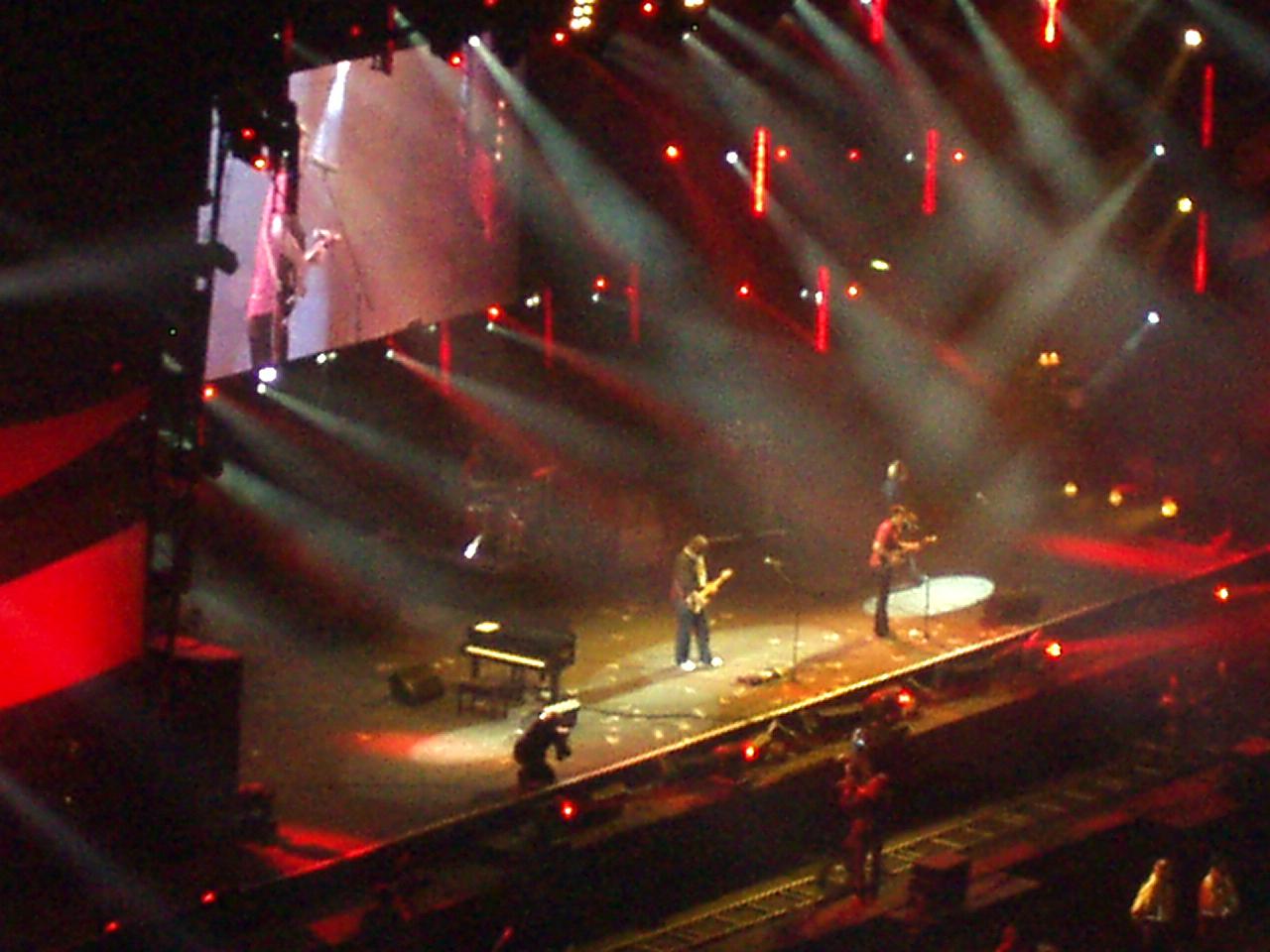 January 2005 We went to the Tsunami Concert held at the Millennium Stadium in Cardiff. There was a whole range of performers who gave their services for free and all the profits went to the Asian Tsunami victims. We travelled up on the Friday evening, visited Cardiff castle in the morning and then made our way to the concert in the afternoon. the concert lasted about 8 hours and we finally left the venue at about 11 pm. The centre of Cardiff had been closed to vehicles (they do it when ever there is a big event on) and we had to walk across the city centre in the snow to catch the bus we needed. I didn't get any good pioctures at all - but here are the best ones of cardiff castle, an external view of the stadium (behind the repairs on the castle) and one shot from inside :) Review stolen from the BBC website (you can link to the review, if its still there, by clicking here) Stadium tsunami gig raises £1.25m One of the biggest charity concerts since Live Aid 20 years ago has raised £1.25m for victims of the tsunami disaster in Asia. More than 60,000 fans were at Cardiff Millennium Stadium. Millions more joined in on TV, radio and online. Eric Clapton, Manic Street Preachers, Keane and Charlotte Church were among those who performed in the marathon seven-hour concert. Organisers said the "phenomenal" response helped beat their target. It brings the total raised for the tsunami victims by the British public to more than £200m. Tsunami Relief Cardiff was put together by the stadium management in just three weeks, in the wake of Boxing Day tragedy in which more than 220,000 people died. Classical, rap, rock and pop performers including Snow Patrol, Embrace, Lemar and Aled Jones came forward to offer their performances for free. The crowd also rocked to Kelly Jones, of the Stereophonics, Feeder and Liberty X, while it was left to Eric Clapton and Jools Holland to end the gig. The audience was also played goodwill messages from politicians and celebrities including Tony Blair and Wales First Minister Rhodri Morgan, Prince Charles and Welsh rugby coach Mike Ruddock. Sharon Osbourne and Bono also sent video messages, while guests included the co-creator of Live Aid Midge Ure, who praised the work of the organisers. Doors opened for the concert at 1400 GMT with classical singer Katherine Jenkins, from Neath, starting the show with Amazing Grace. The crowd joined in with her rendition of You'll Never Walk Alone, waving LED torches that represented victims of the disaster. Among the acts to get the biggest cheers from the audience were Welsh rappers GLC, the words of their songs suitably changed for a TV audience. Rockers Keane and Snow Patrol were also given a great ovation along with Lemar and R&B vocalist Craig David. But the biggest ovation was reserved for the Manics, from nearby Blackwood. At the end many of the performers joined Jools Holland and Eric Clapton for Shake, Rattle and Roll as the final figure raised - £1,248,963, flashed across the giant screen. Organiser Paul Sergeant, the stadium's general manager, said the evening had been "phenomenal". He said: "The crowd have left singing. Everything has gone - for the whole three weeks - so smoothly. "We have shown that this is Wales, we are capable of delivering . If the opportunity came round we would do something again." The show was broadcast by different outlets of the BBC and shown in its entirety on S4C, as well as streamed on the web