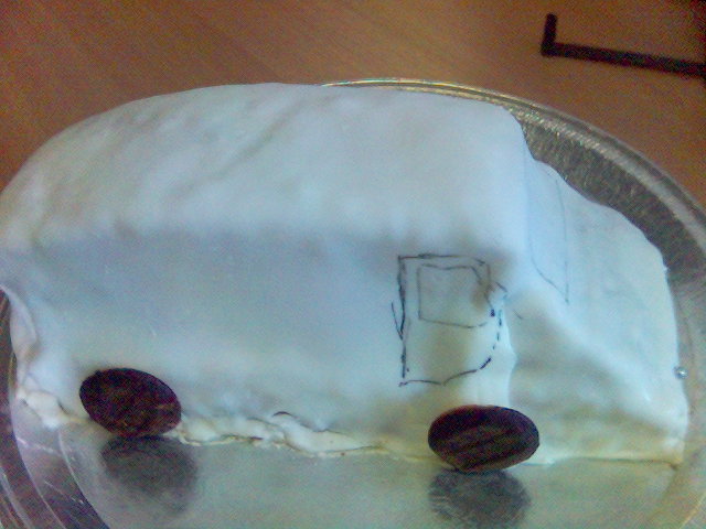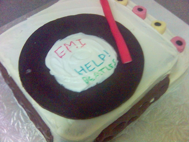 James asked for a carrot cake. You’d have thought he’d have learned by now. Richard got a (fairly) plain cake.Steve Power, the DJ from Wave 105 got a record player. One of the drivers got a van! Fortunatley it didn't taste as bad as it looked. Then a sales consultant, called Jenny, left - and she got a mega-choccy cake! Lucky Girl! |