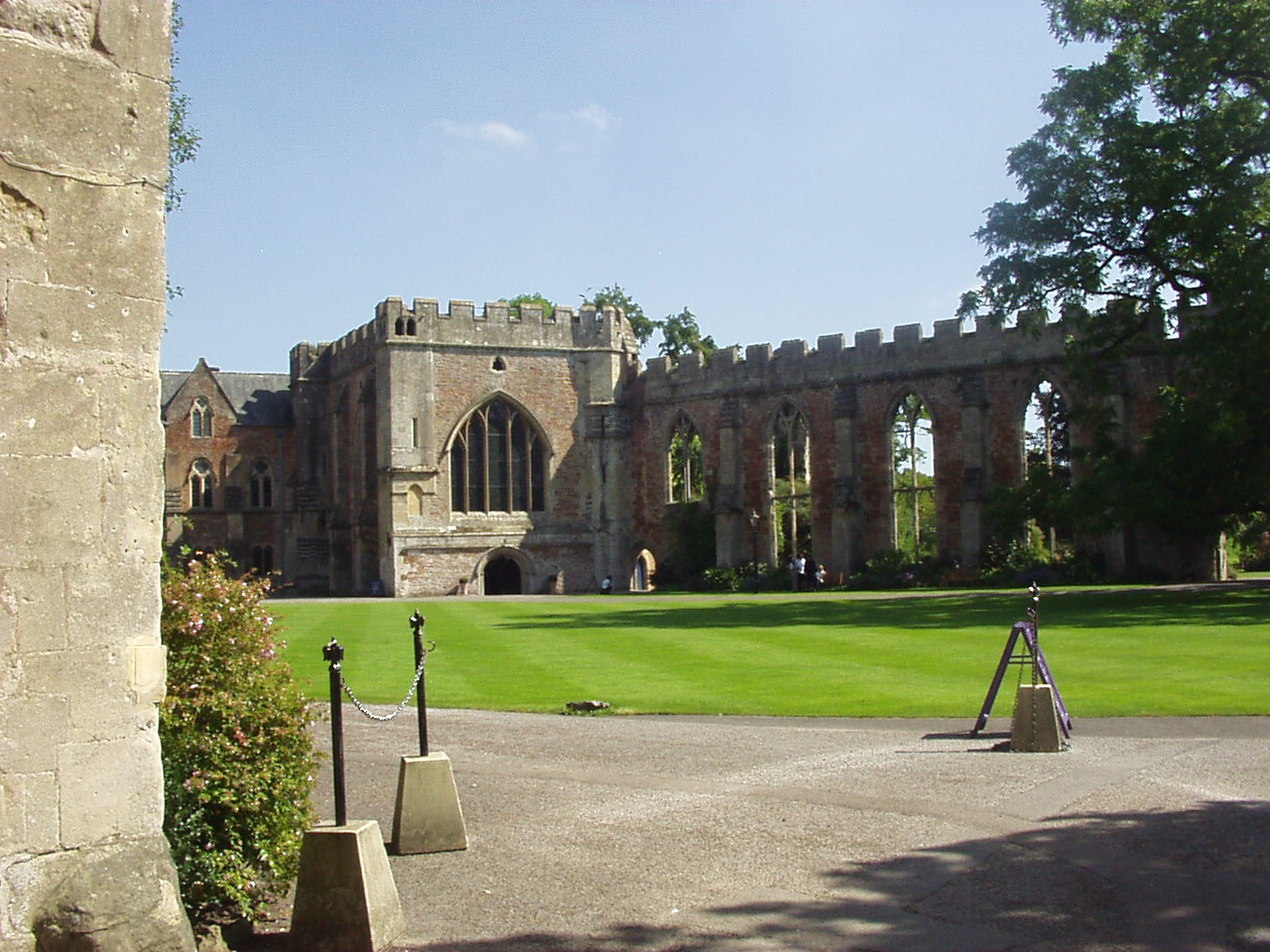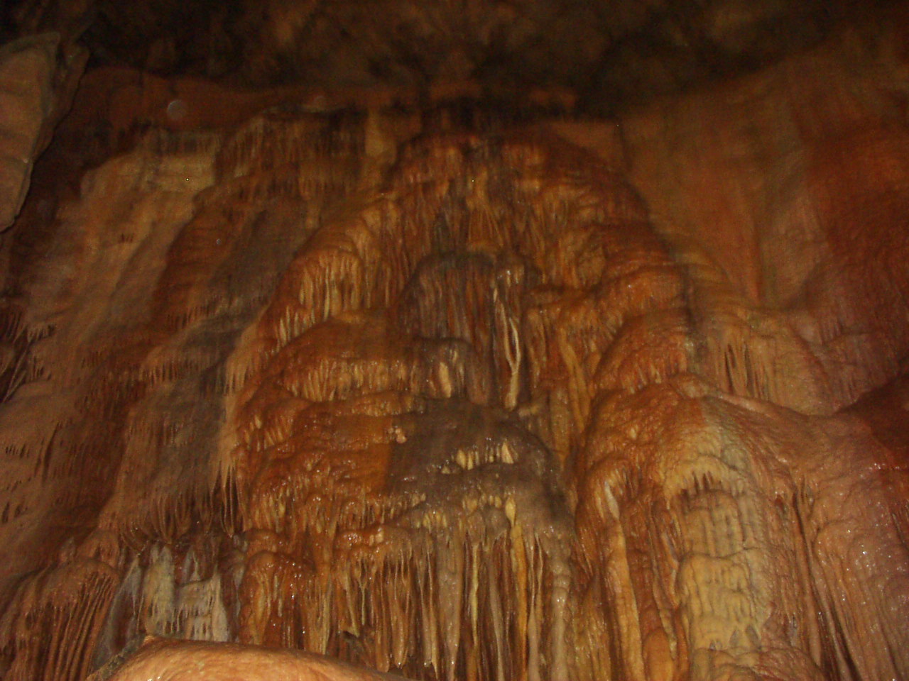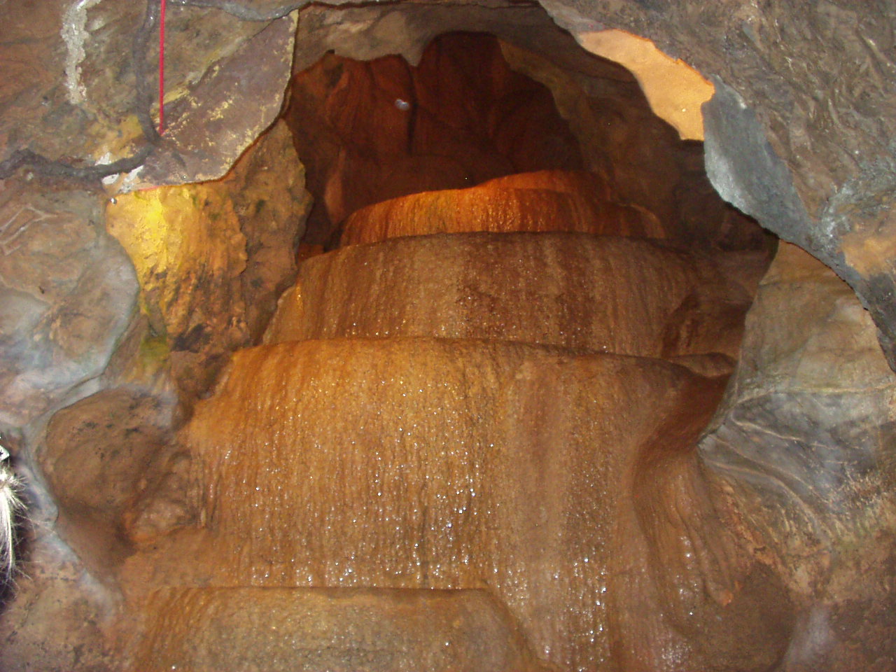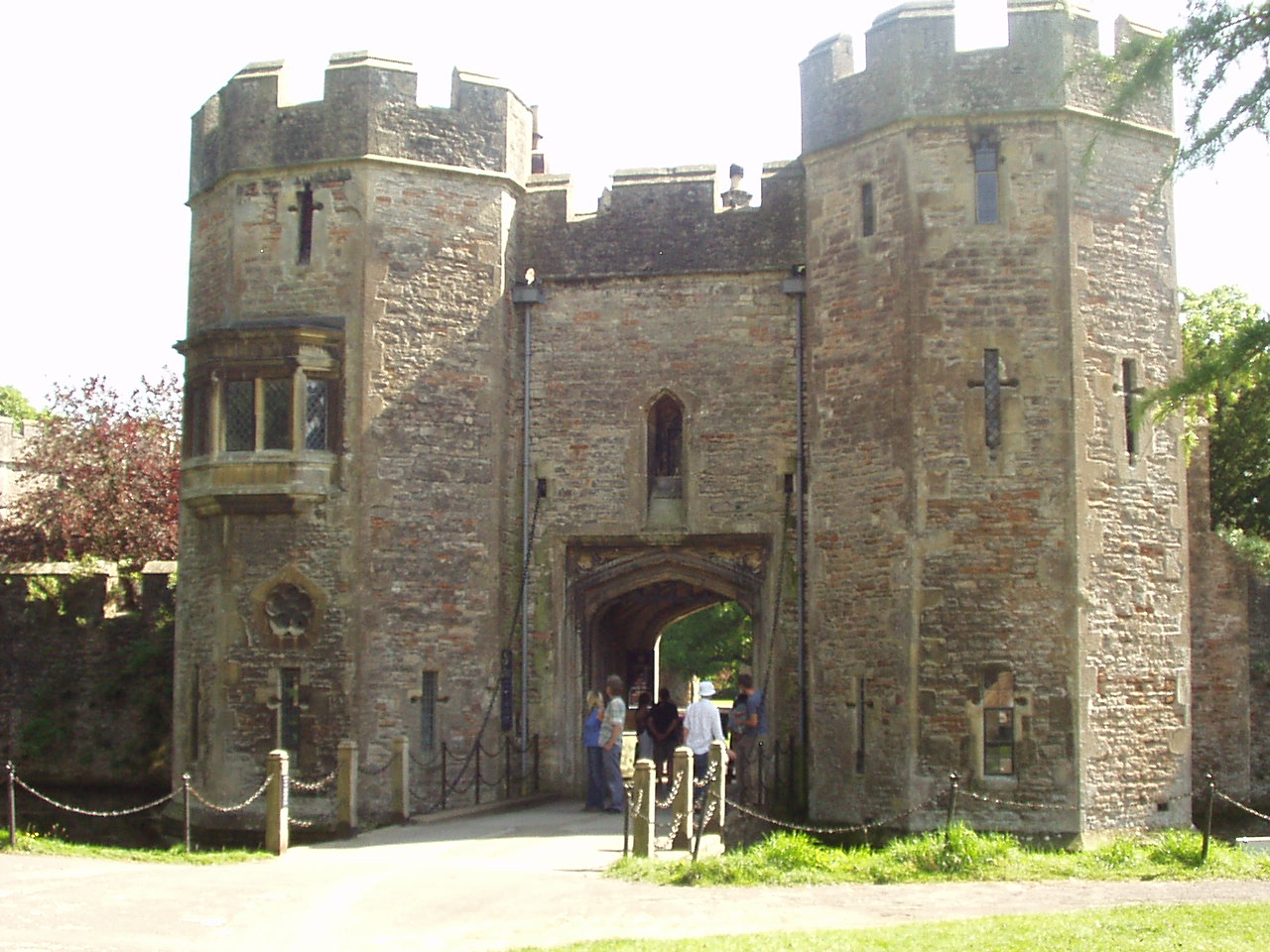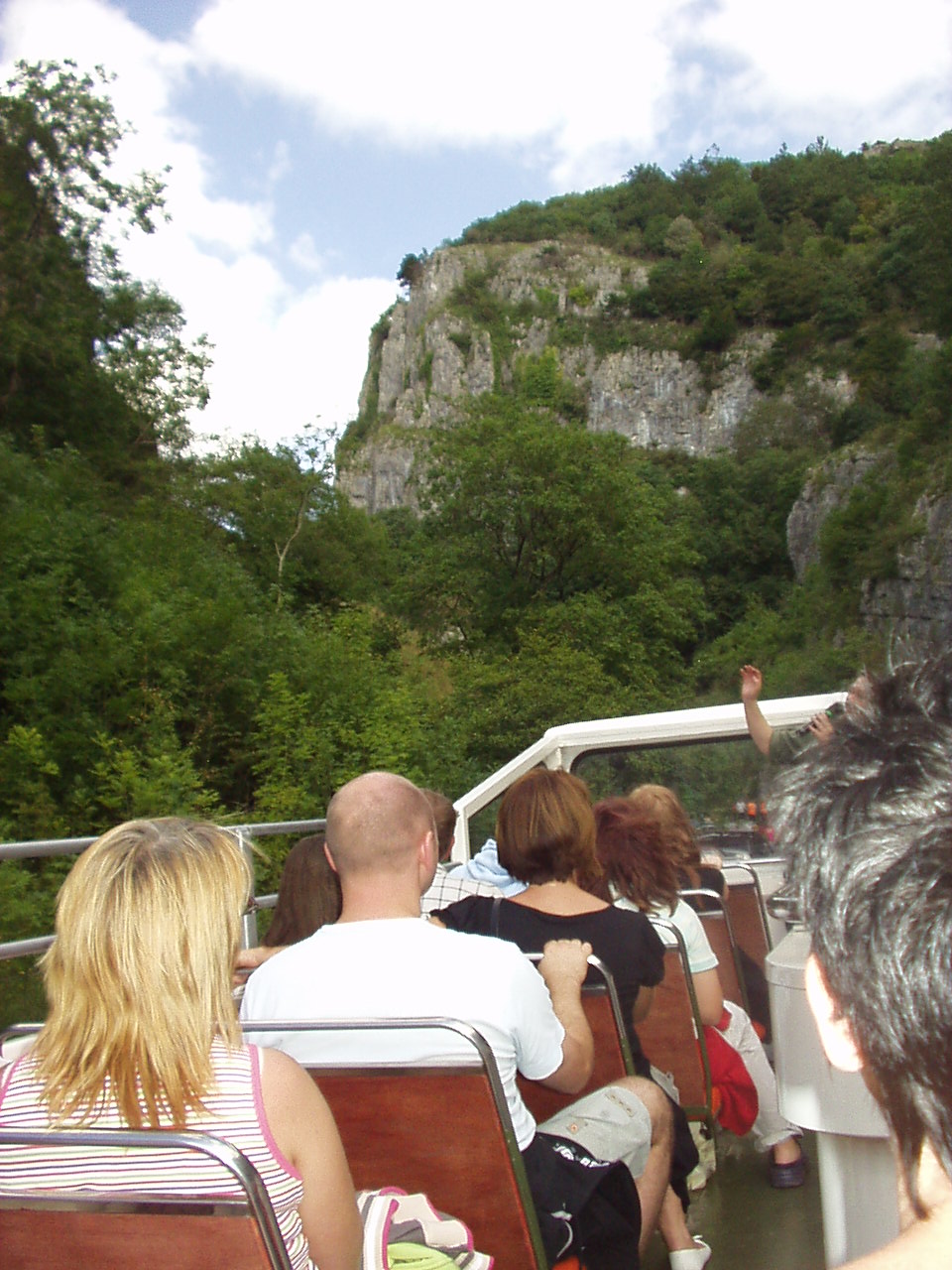 the place. We had lunch in the new 'Big Top' restaurant, which we thought was expensive for the mediocre food that was on the menu. A quick look in the 'bear factory' which wasn't stuffing bears and then a quick look at a clown show intended for kids. We were not very impressed with it as a day out. To cap it all the batteries in the camera failed and we didn't get any pictures of the place either. The batteries were freshly charged re-chargeables that didn't hold their charge. Still they are years old and have given good services, and were honorably retired to the nearest waste bin. On to Wells in the afternoon. Historically, in England, any town that has a cathedral is technically a city, and Wells Cathedral makes Wells England's smallest city. It has a really pleasant town center, the main street lead up a hill, flanked by a range of shops to a market place on top of the hill. Just beyond the market place are The Bishop's Palace and The Cathedral. Unfortunately for us, the palace was closed to the public as some lucky couple were holding their wedding reception there. However, it reminded me that at the time it was built bishops were incredibly powerful people. The first two pictures show the outer gatehouse (from outside and then inside), the inner gatehouse and then a view across the courtyard of the palace. The closest we could get. The fifth picture shows the palace's moat. Now-a-days we don't think of bishops as living in well defended castles. The final pictures is of Wells Cathedral. We weren't allowed to take pictures inside unless we paid a photographers premium - which we decided not to do. On Sunday we went to Cheddar Gorge - which we found really suited us as a day out. Cheddar Gorge is England's biggest gorge, although in world terms it isn't really very big. Think of it as 'bijou'. Throughout the day we took a number of pictures as we were walking around or riding the open top bus. Some of the views are taken from a lookout tower on the top of the gorge, which I climbed 274 steps to get too. Then I climbed the tower itself. Believe me, thats a lot of steps. The gorge also has a climbing school, and we saw quite a few groups climbing the rock faces. One particular rock is said to look like a lion's head. There are two cave systems here, Gough's Cave and Cox's Cave. Gough's cave is larger and, perhaps, has a really good personal audio-tour commentary, so you can take your time and listen to as much (or as little) of the commentary as you wish. It is also where they found the skeleton of Cheddar Man, which is Britain's oldest complete skeleton. Cox's cave is shorter with a general audio recording tour, but it incorporates a 'fantasy' section with Elves and Goblins and a battle of Light against Darkness. There is also a museum of stone age life - it has a some finds and a couple of clever exhibits. We stopped for lunch at a