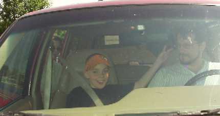 Dollsteak and his family stayed over in the same Motel as Ari and I - so we spent the evening together and then met up for breakfast again in the morning. You can see Doll's son Zach in the front seat and his wife, Kelly, climbing into the back. They were great fun - Zach even helped me choose a couple of toys to bring back for Ian. Although I Still don't understand how Dollsteak managed to finish up with such a great family ... |