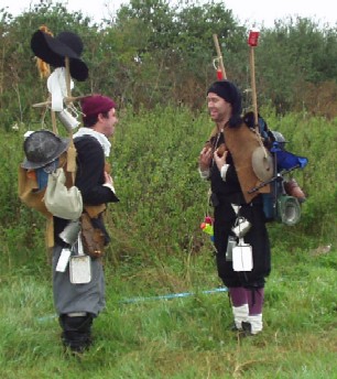 I were riding around the battle field (using our pole-arms as hobby