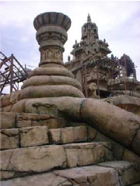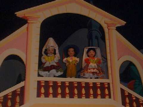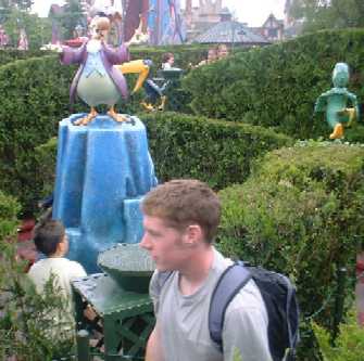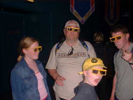 Some of the gentler attractions. We all split up to go in the maze, and I almost fell through the hedge getting this picture of Christopher, a kind man helped me back out again, though. We were waiting to go into the Honey I Shrunk the Kids thing, when Elo took the second pic. She decided we all looked cool! It's another simulation, where the audience is 'made' to shrink. All sorts of strange things happen, including getting sneezed on by a huge dog, before we were returned to normal. The last picture is in Its a Small World, which is another of our favourite rides. You drift gently along on a boat through an exhibition of thousands of dolls, all dressed in national costume, singing the Its a Small World theme.