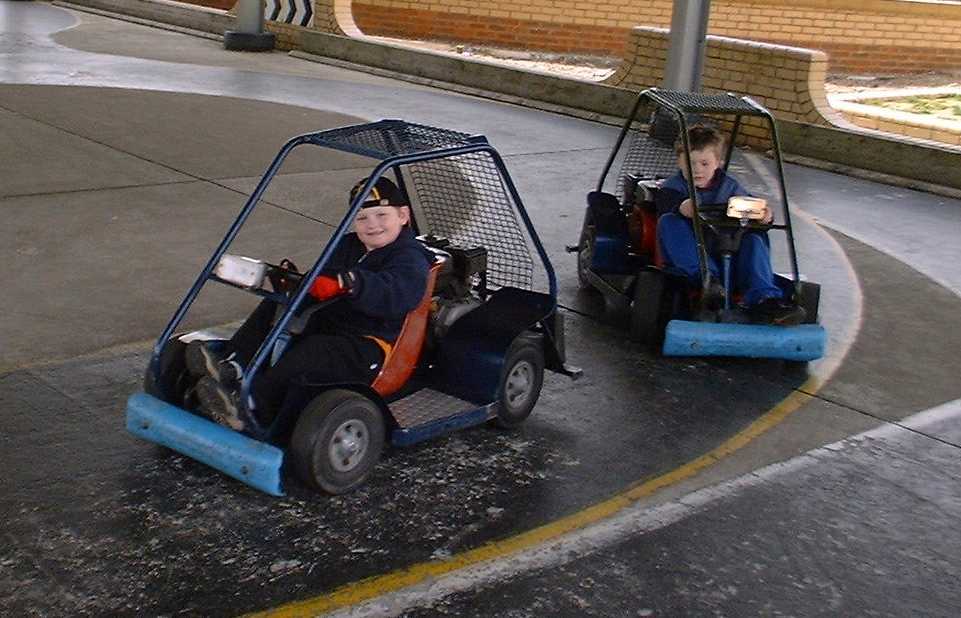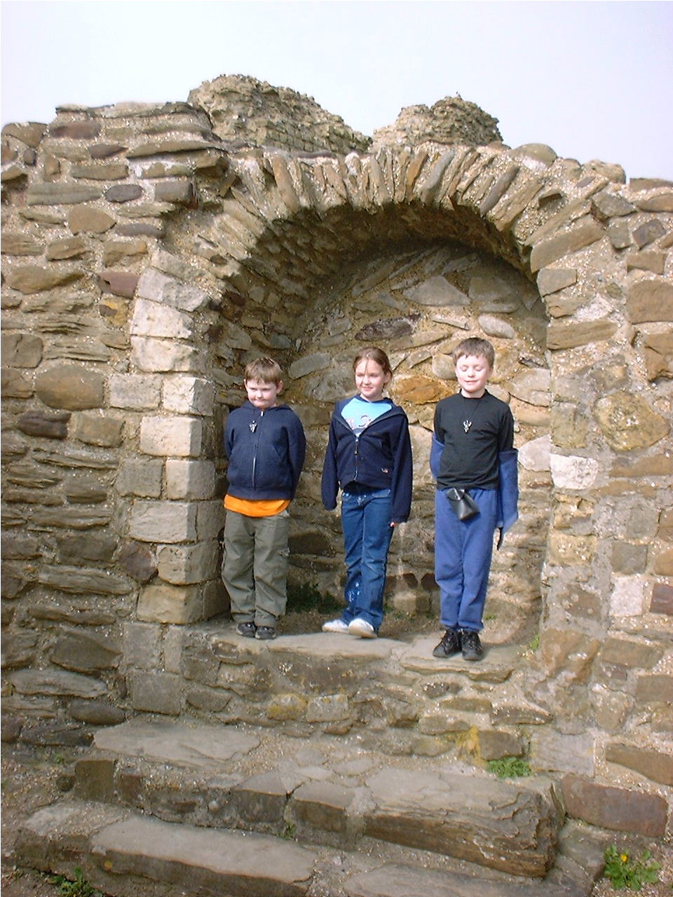 We visited a smuggling exhibition, in a series of dark caves, but only got one picture of the kids, in the stocks. However we got some pictures of the remains of Hastings Castle, which was the first castle the Normans built in England after the conquest in 1066! We also found some go-carts, a trampoline and the mini-golf.