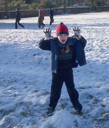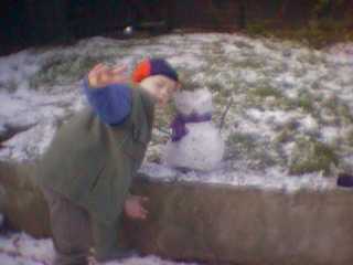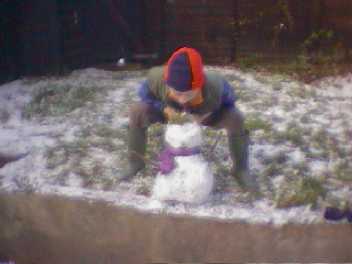 January 2001: It snowed so Ian and I built a small snowman.