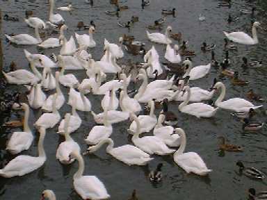 As we crossed the Avon on a footbridge leading from the car park to the town center, we saw the swans. Seemed like thousands of them. Jhael thought it strange - swans in Australia are smaller than our swans and, of course, they are black rather than white. |
