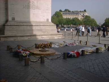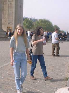 We also went to visit the Arc de Triomphe and the Tomb of the Unknown Soldier. The last picture shows Kathy and Mary walking across the front of the Arc, they don't much like being photographed and it can be really hard to get shots of them. |