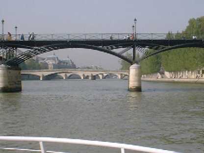 We did go to visit other places, like the cemetery that Edith Piaf and Jim Morrison are buried in, the left bank of the Seine and the Latin Quarter for the 'ambience' and to buy souvenirs. I got four prints of sailing boats for my living room walls. If you are really unlucky - I might scan them and post them here ...... OK maybe not. The only extra Pictures I got for you are a shot of the Seine as we went for a boat trip (I think its the Louvre on the left under the bridge- but I'm not sure) and the sun setting over Paris. All together now - - - "Ahhh!" |