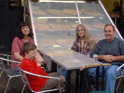 Then it was back to England. We visited London's Soho ands well as Trafalgar Square and a couple of other places. Another day we went to the Tower of London and on yet another day we went of Oxford, where Al bought some huge souvenirs, which must have caused him problems to get home. In fact it was so large they decided to take a taxi from central London all the way out to Heathrow when it was time to fly home.!! However I was lax, and the only decent photo I got in England was when Ian and I went down to Camden market to meet up with Mary, Kathy and Al. This picture shows them all waiting for Pizza outside a take away restaurant in Camden Town. We were brave that day :) |