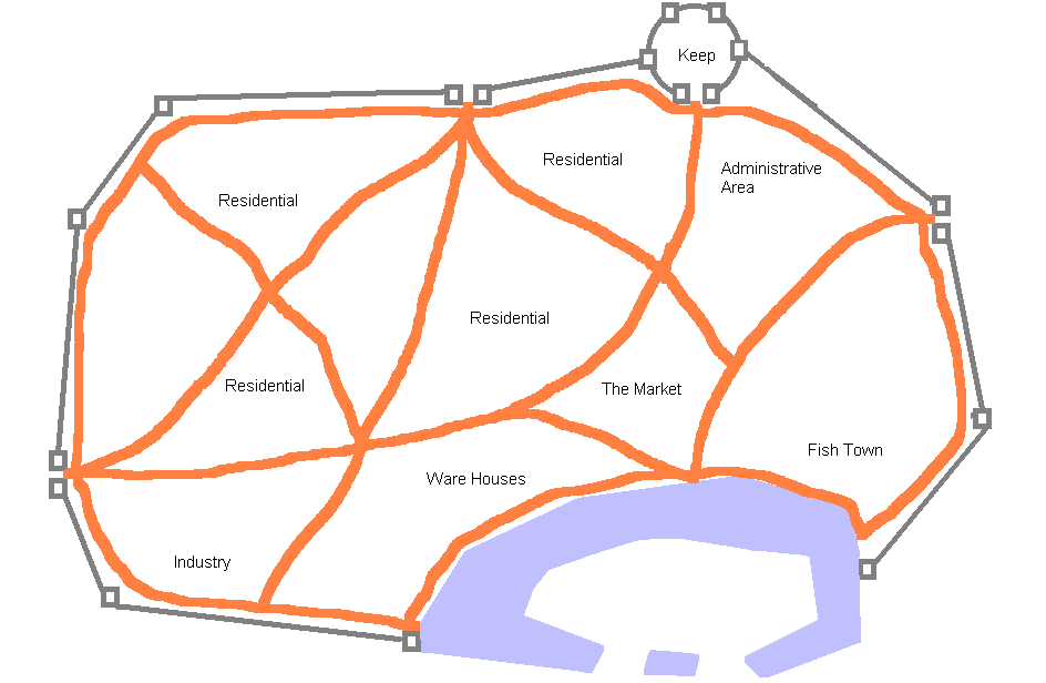 The Industrial Area houses the Leather workers, smiths, glass blowers and any other noisy or smelly businesses.