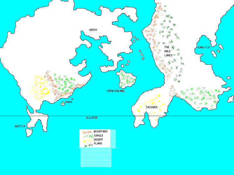 Hann is fairly insignificant in world terms, it sits at the bottom of the Western Continent between Oerth and Maztica, and has the same sort of weather as Spain or Northern Italy would expect in the real world. The Eastern Continent includes Kata Tur, Zachara and the Wild Lands.