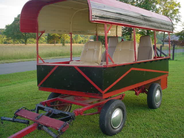 | This picture shows a modern wagon with a steel roof. If you think of this type of roof and sides, with canvas stretched down from the roof to meet the sides. Add the front part front the caravan above - and that's how I imagine 'The Van' looks. | ![]() |